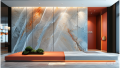 在商业空间同质化严重的今天,如何在冰冷的混凝土和千篇一律的装饰中,让品牌形象从模糊背景中跳脱出来,成为清晰而独特的印记?无界岩板——这一材质领域的革新者,正以其独特属性,成为设计师手中雕刻品牌辨识度的锋利刻刀。品牌调性的空间调色板:纹理与色彩的精准表达无界岩板不仅是材料,更是品牌基因的视觉载体。深谙色彩心理学的设计师,能通过岩板丰富的天然纹理与精确可控的定制色彩,将其化为品牌的“空间色卡”。奢华氛围塑造:卡拉拉白大理石纹岩板以其纯净的基底与流动的灰色脉络,铺陈于高端酒店大堂墙面,在灯光映射下如凝