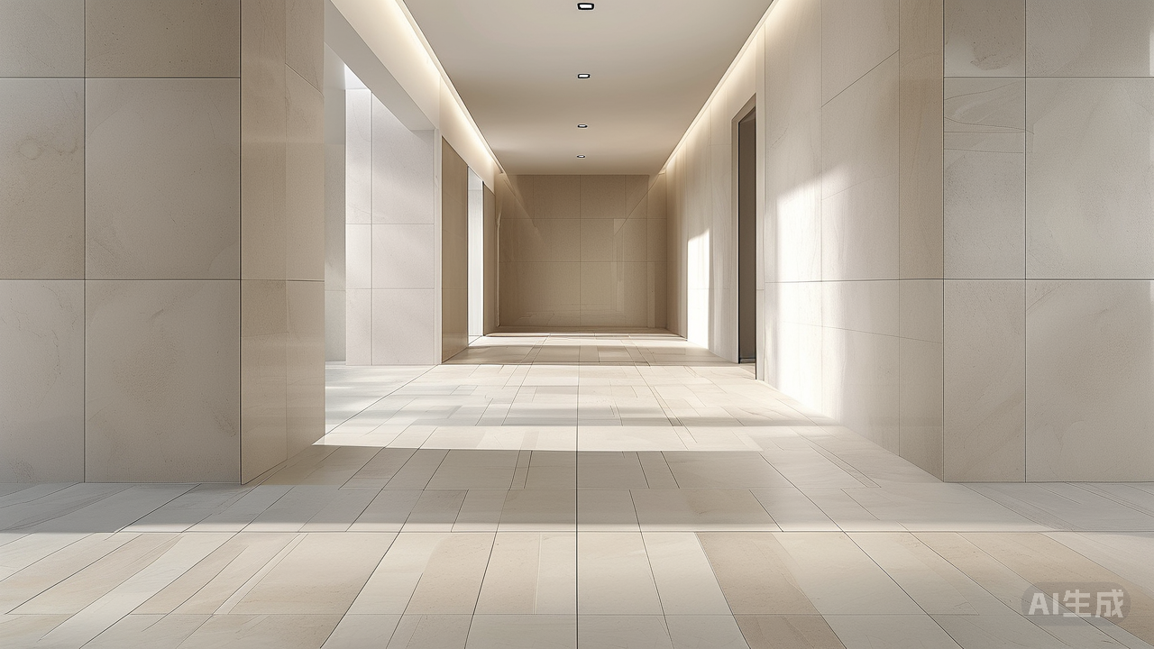 第二幕:边界的消融术 小户型最怕割裂感。深色地砖、复杂拼花或不同材质拼接,都在无形中切割地面空间,强调区域的局促。浅色柔光砖则化身视觉魔术师,以统一色调与微妙肌理施展"消融术"。通铺浅米、珍珠白或浅灰调的柔光砖,地面瞬间化为延展的画布。砖缝选择同色系美缝剂,进一步淡化分割线,视线得以毫无阻碍地滑向远方——你家的走廊可能因此显得更长,客厅仿佛向阳台又延伸了几米。这种视觉连贯性,正是空间膨胀感的核心密码。