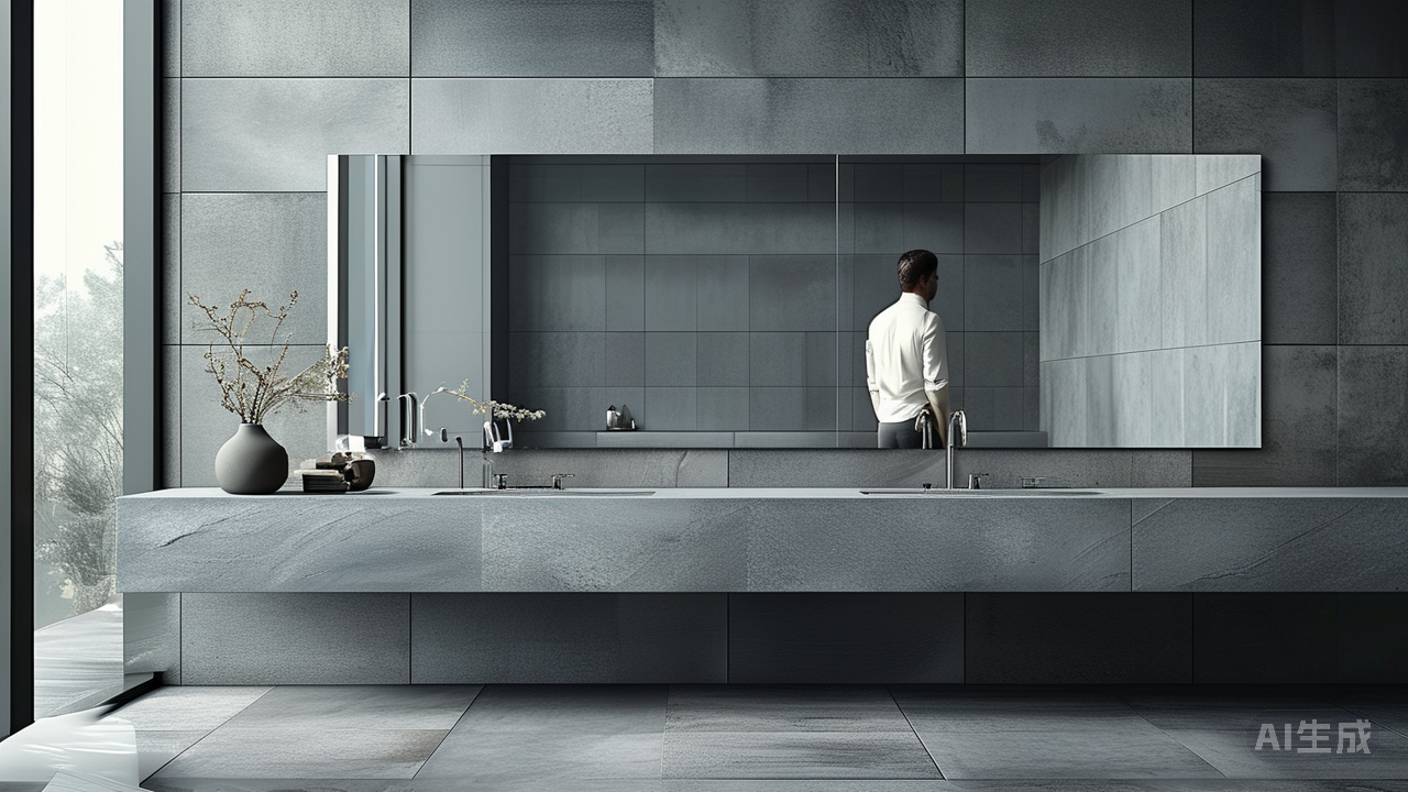 卫浴空间则如精密仪器般体现细节的力量。柏林灰X1E126967Y被赋予在哑光质感的墙砖上,如精心打磨的冷钢,坚实而内敛。盥洗台面选用大块深灰岩板,其天然纹理如凝固的流水,冰冷触感下自有磅礴生命力。镀铬龙头与嵌入式花洒闪烁着锐利银光,与灰调背景构成硬朗而精致的对话。一面覆盖整墙的灰玻镜柜,不仅延伸了视觉空间,其光滑表面更冷静映射着每一处细节,让剃须、理容的日常仪式,也带上严谨如工艺的质感。