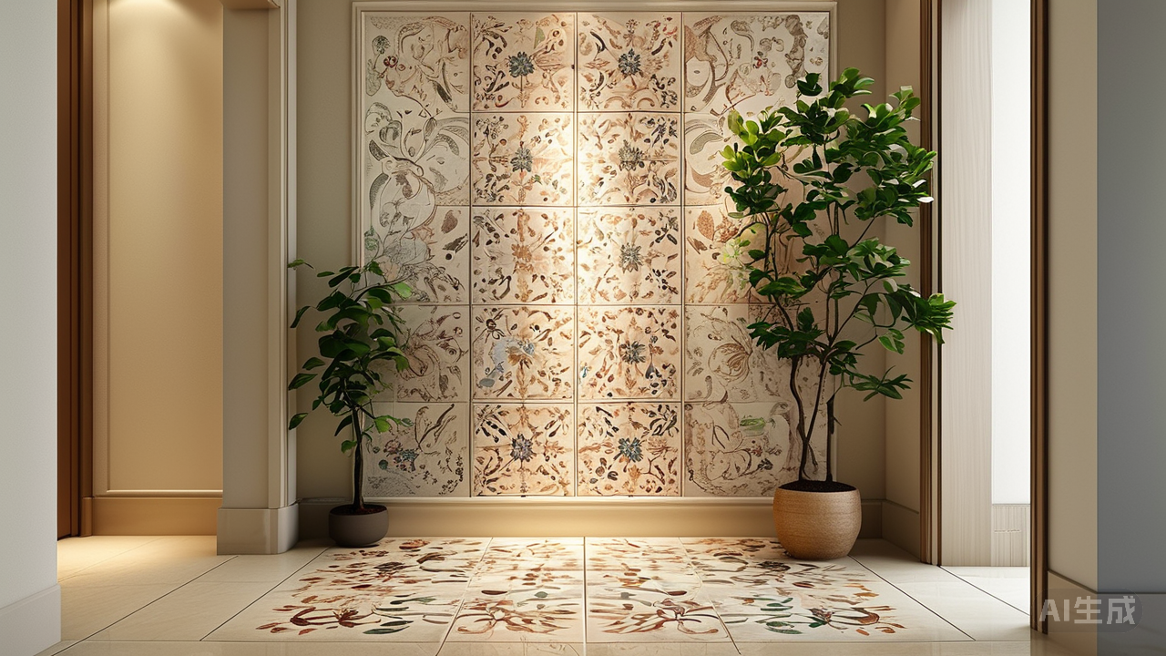 花砖之美,亦在色彩的韵律流淌间。三五点跳跃的亮色,如暗香浮动的橄榄绿、沉静大气的赤陶红,以素墙或纯色地面为底,方能在沉静中奏出节奏明快的交响。若色彩喧宾夺主,纷杂无章,则如失序的乐音,徒增纷扰。主次分明,空间方能在和谐中悄然升华。 花砖并非孤单的舞者。它需与周遭的材质彼此唱和。温润的木纹地板、冷静的金属构件、或是粗粝的水泥墙面,皆可与花砖的细腻光泽形成奇妙的张力,构建出空间丰富的层次肌理。这种新旧交融,仿佛时光在砖隙间微妙流转,既留住往昔的暖意,又铺展出未来的清光。
